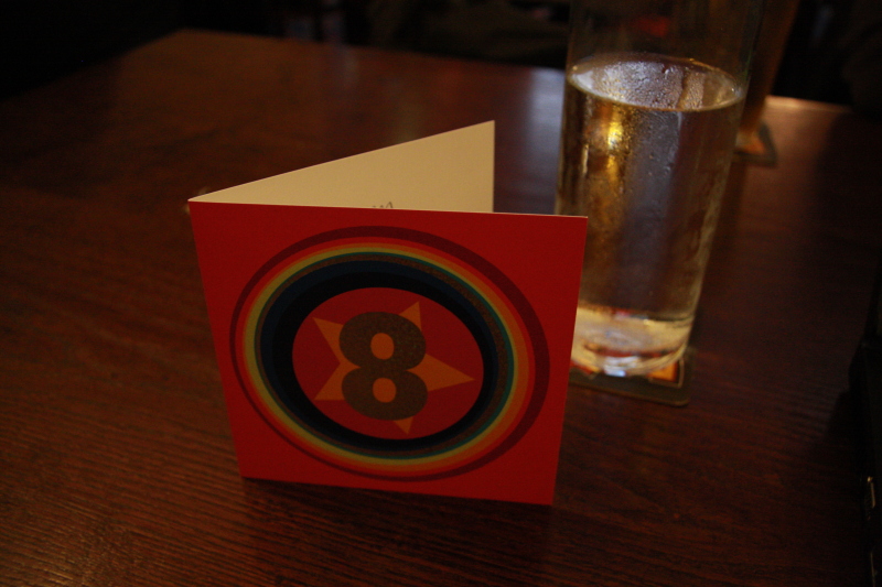 Birmingham.pm celebrates their 8th birthday. JJ brought a card :)